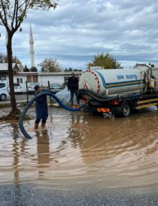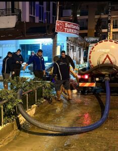 Şiddetli yağışa rağmen gece gündüz sahada aktif olarak çalışan Didim Belediyesi, su tahliyesi, mazgal açma ve acil müdahale gerektiren alanlarda hızlı hareket ederek pek çok noktadaki olumsuzluğu giderdi. İlçe genelinde görüntülenen çalışmalar, belediye ekiplerinin birçok bölgede eş zamanlı görev yaptığını gösterdi.